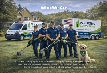 P7 Electric Landscaping is a modern landscaping company specializing in quiet, 100% electric lawn care services. We provide high-quality, professional results with zero emissions, reduced noise, and equipment that is safe for your family and pets.